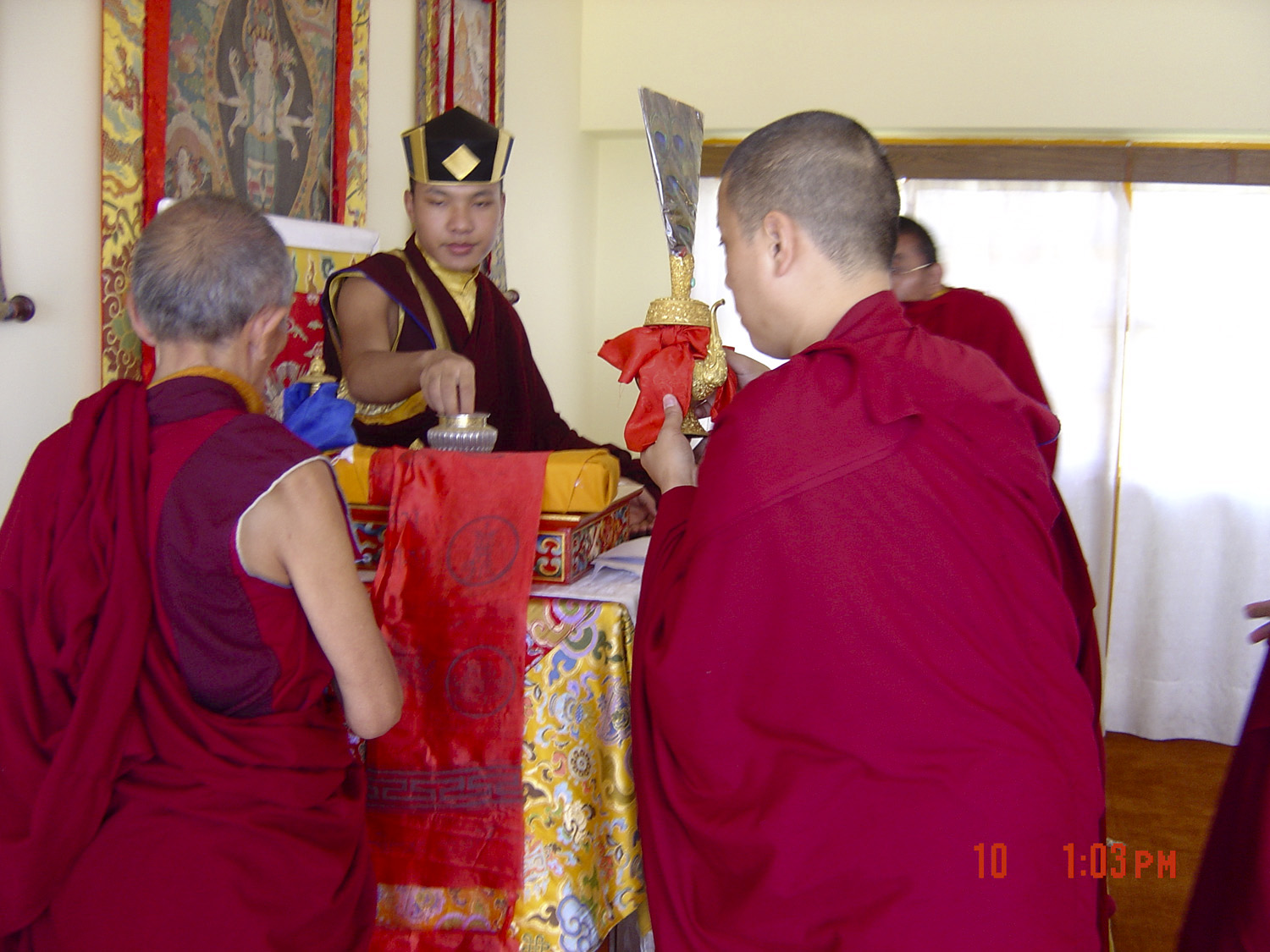 - 2003/10/10 - 尊勝 第十七世大寶法王主持竹奔德千仁波切剃度儀式,突托仁波切亦在場觀禮。