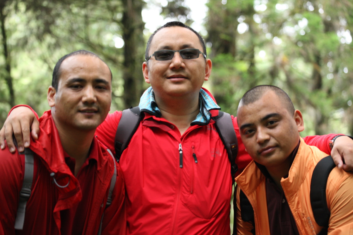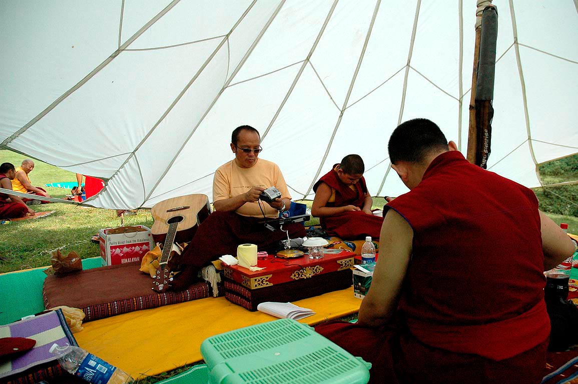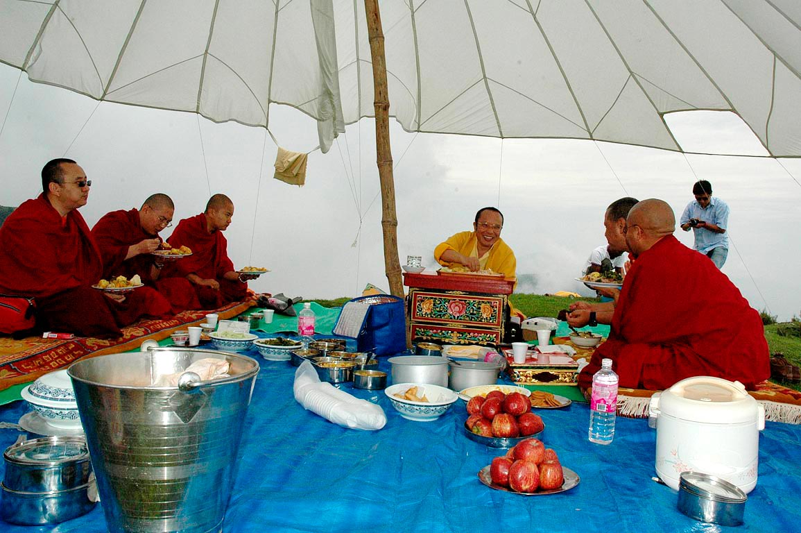 (208) 第十二世廣定大司徒巴與仁波切們在法會期間的野餐:(左起)突托仁波切,賈敦仁波切,貢噶仁波切(2007/09/06)