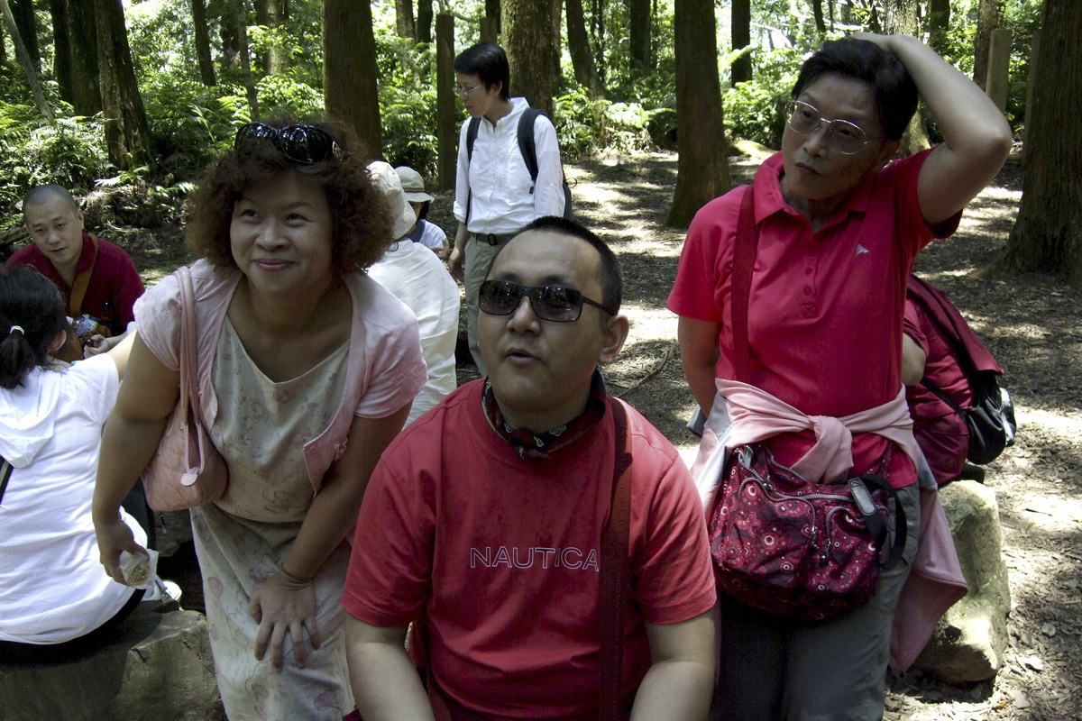 (209) 第十二世廣定大司徒巴與仁波切們在法會期間的野餐:(左起)突托仁波切,賈敦仁波切,貢噶仁波切,大司徒仁波切,桑傑年巴仁波切,詠給明就仁波切(2007/09/06)