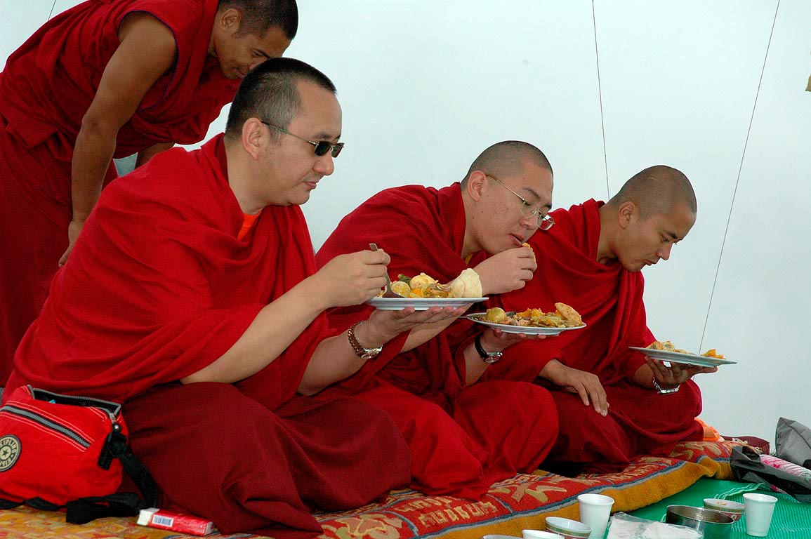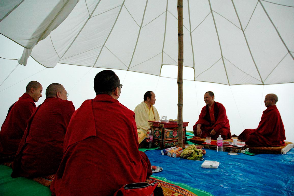 (207) 第十二世廣定大司徒巴與仁波切們在法會期間的野餐:(左起)大司徒仁波切,蔣貢康楚仁波切,突托仁波切(2007/09/06)