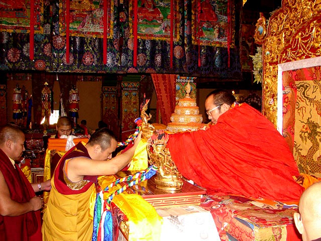 (197) 仁波切及信眾們向尊貴的桑傑年巴仁波切獻曼達:(左)突托仁波切 (右)第十世桑傑年巴仁波切(2007/10/08)