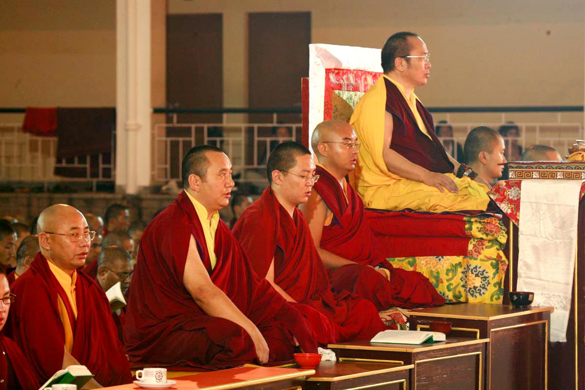 (195) 噶舉寶藏及心密藏口傳及灌頂圓滿,接著舉行廣定大司徒巴長壽法會:(左起)賈敦仁波切、突托仁波切、貢噶仁波切(2007/10/12)